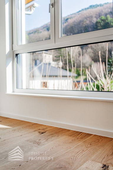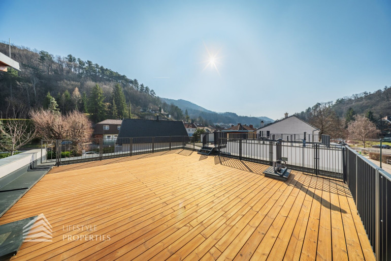 Erleben Sie exklusives Wohnen auf höchstem Niveau: Dieses stilvolle, moderne Wohnhaus verbindet zeitlose Architektur, hochwertige Materialien und innovative Haustechnik zu einem einzigartigen Wohnambiente. Großzügige Fensterflächen durchfluten die Räume mit Tageslicht, während die private Dachterrasse, die sonnige Terrasse im Erdgeschoss und der direkt zugängliche Garten ungestörte Ausblicke ins Grüne bieten und zu entspannten Stunden im Freien einladen. Ein Carport für zwei Fahrzeuge, Smart-Home-Steuerung sowie ein App-gesteuertes Alarmsystem sorgen für höchsten Komfort und Sicherheit. Natur, Stil und modernste Technik treffen hier harmonisch aufeinander und schaffen ein exklusives Zuhause, nur wenige Kilometer von Wien entfernt, mit rascher Anbindung an die Innenstadt und die schönsten Naherholungsgebiete des Wienerwaldes.