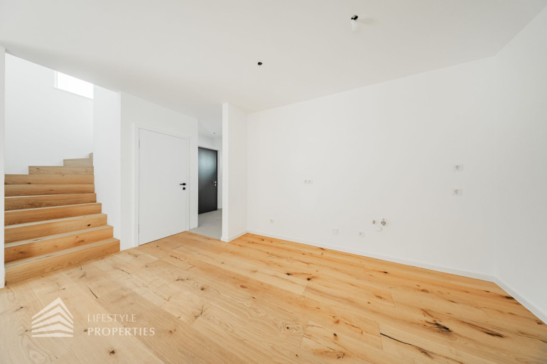 Zum Verkauf gelangt dieses exklusive 4-Zimmer Traumhaus mit bestehender Miet-Kauf-Option – modern gestaltet, luxuriös ausgestattet und mit direktem Zugang zu Garten und Terrassen, das höchsten Wohnkomfort und innovative Haustechnik vereint.