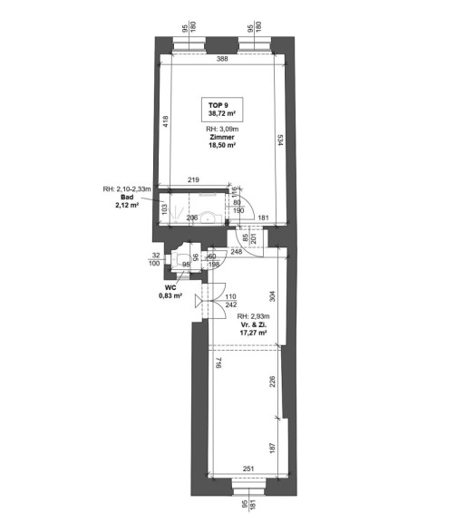 Die Wohnung befindet sich im 3. Stock und erstreckt sich über eine Fläche von ca. 39 m². Die Wohnung vereint typischen Albaucharakter mit ca. 3 m hohen Decken. Die Wohnung teilt sich auf in einen großen Wohn-Schlafraum, separatem Vorraum mit Küche sowie separatem Bad inkl. Dusche und separatem WC. Die Wohnung befindet sich in einem sanierungsbedürftigen Zustand, und bietet Raum für individuelle Modernisierungsmöglichkeiten. Insbesondere Installationen, Bad, WC, Böden sind erneuerungsbedürftig.