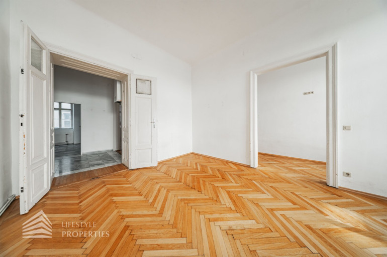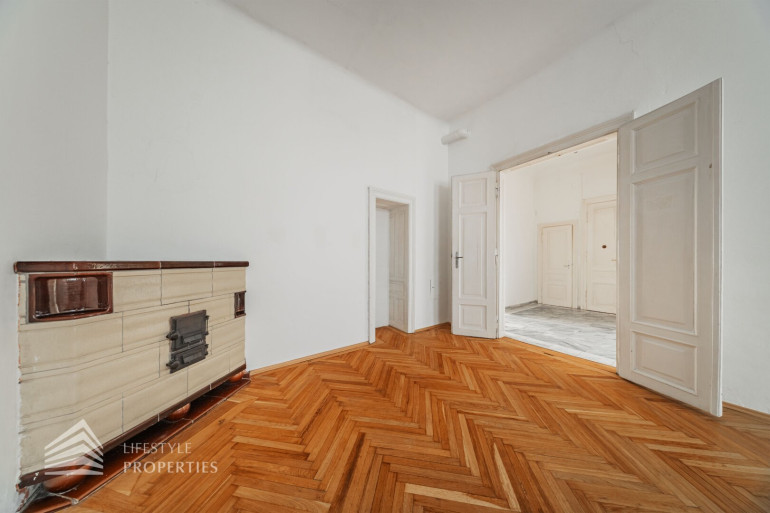 Die Wohnung befindet sich im 1. Stock, in einem repräsentativen Altbau und erstreckt sich über eine Fläche von ca. 79 m². Diese Wohnung überzeugt mit typischem Albaucharakter, mit grosszügiger Raumhöhe von ca. 3,60 m, Parkettböden und Flügeltüren. Die typsichen Proportionen eines Altbaus schaffen eine wohnliche und angenehme Atmosphäre. Die Wohnung verfügt über 2 Zimmer, ein Kabinett, eine separate Küche, ein Badezimmer, ein getrenntes WC sowie einen zentralen Vorraum.