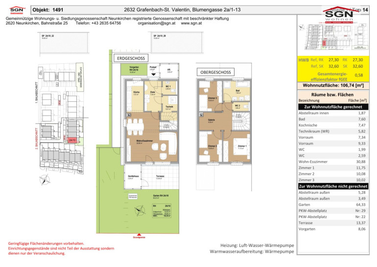 Ihrem neuen Zuhause sind zudem die PKW-Abstellplätze Nr. 1 und 2 zugeordnet. Ein attraktiver Spiel- und Gemeinschaftsplatz sowie ein großzügiger Fahrradabstellplatz runden das Gesamtpaket perfekt ab – ideal für Familien, Naturfreunde und alle, die Wert auf hohe Lebensqualität legen.