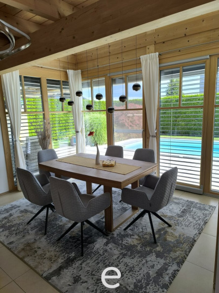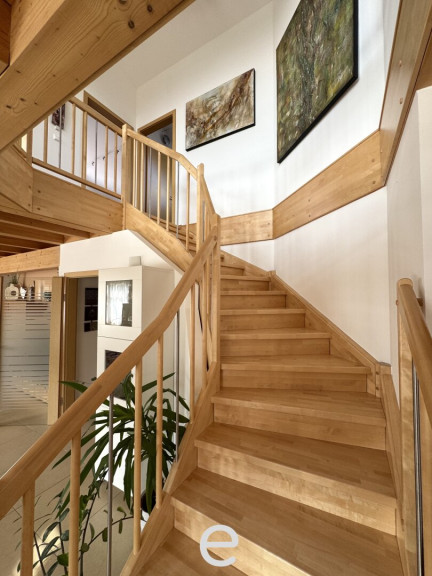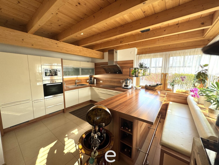 Zeitlose Architektur trifft auf spürbaren Wohnkomfort: sichtbare Massivholzdecken, Naturparkettböden, Massivholztreppe und eine großzügige Raumhöhen bis zu 3,50m schaffen ein offenes, lichtdurchflutetes Ambiente. Holz-Aluminium-Fenster (3-fach Verglasung) sowie der sommerliche Hitzeschutz durch Holzfaserdämmung runden das durchdachte Gesamtkonzept ab - Ein Haus, das man nicht nur bewohnt – sondern bewusst erlebt.