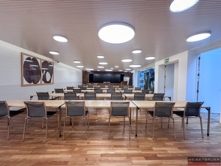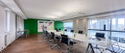 In den großzügigen Besprechungsräumen im Erdgeschoss und im dritten Obergeschoss lässt sich eine ideale Arbeitsumgebung für Meetings und Präsentationen schaffen. Die Einzel- und Gemeinschaftsbüros in den mittleren Geschossen zeichnen sich durch ihre flexible Gestaltung aus.