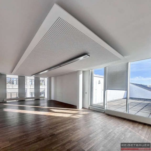 Ein besonderes Highlight dieser Immobilie ist die große Terrasse im obersten Stockwerk. Sie umfasst eine Fläche von ca. 117 m² und bietet einen atemberaubenden Blick auf die Linzer Innenstadt und die Donau.