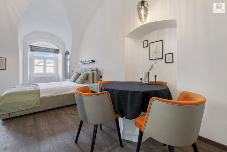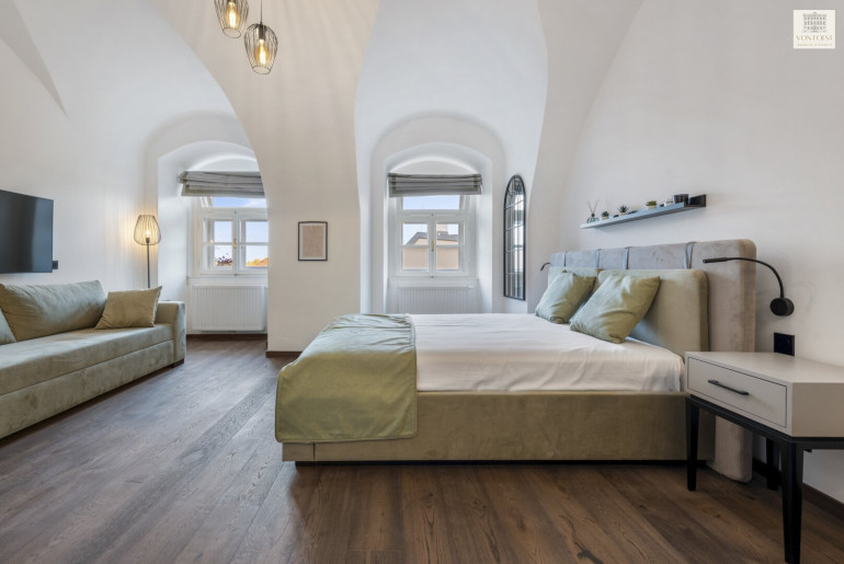 Das architektonische Erbe des „Freihofs“ aus dem Jahr 1455 wurde in all seiner Eleganz bewahrt und auf höchstem Niveau revitalisiert. Die Wohnungen vereinen den historischen Charme mit modernster Ausstattung und bieten den perfekten Rahmen für ein luxuriöses und komfortables Wohnerlebnis. Hohe Kreuzgewölbe-Decken, lichtdurchflutete Räumlichkeiten und edle Materialien prägen dieses stilvolle Wohnprojekt und verleihen eine einzigartige Atmosphäre. Feinste Parkettböden, exklusiver Marmor und moderne SieMatic Luxus-Küchen unterstreichen das gehobene Ambiente.
