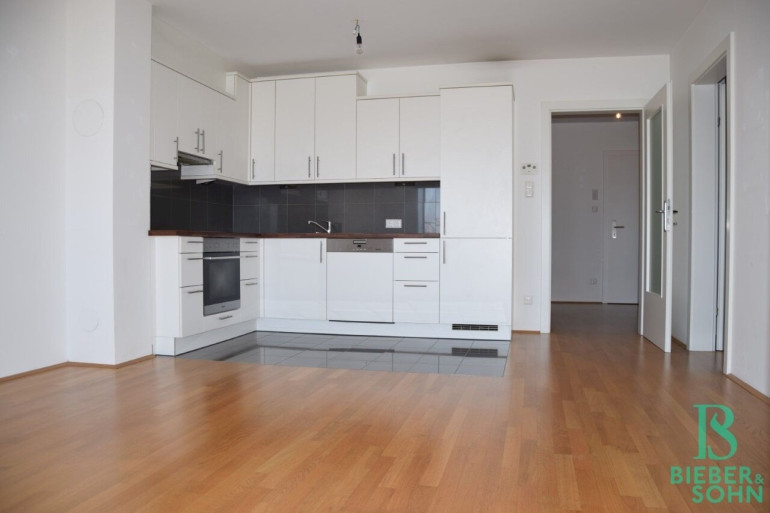 Im 2. Liftstock, auf einer Wohnfläche von 58,26m² sind ein großzügiger Vorraum, ein Wohnraum mit offen gehaltener Miele-Küche, ein Zimmer mit begehbarer Garderobe, ein Bad mit Wanne, Doppelwaschtisch und Waschmaschinenanschluß, ein separates WC mit Handwaschbecken und ein großer Abstellraum vorhanden.