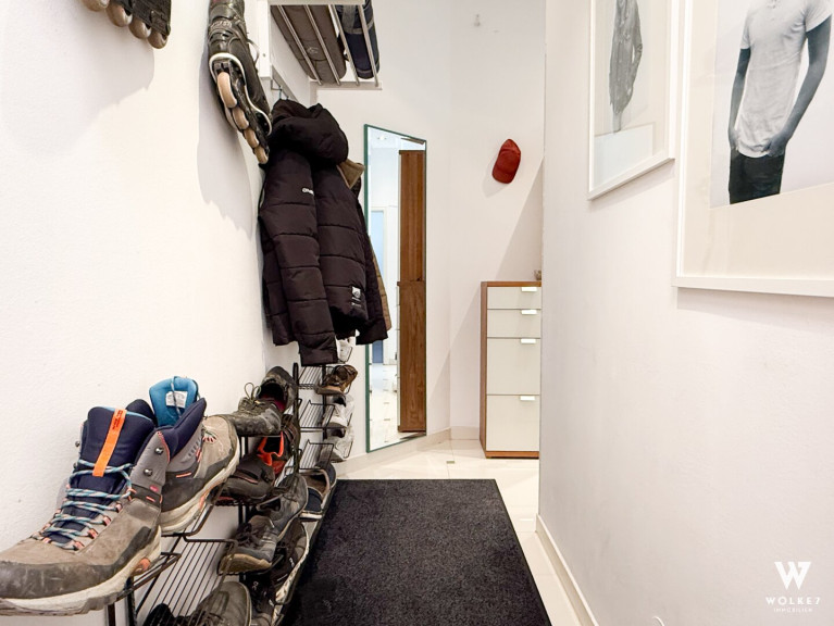 Der südseitige Balkon lädt zu entspannten Stunden in der Sonne ein und bietet mit der installierten Photovoltaikanlage sogar eine nachhaltige und zukunftsorientierte Energiekomponente. Dank Klimaanlage genießen Sie auch an heißen Sommertagen ein angenehmes Raumklima.