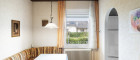 Zur weiteren Ausstattung zählen ein Badezimmer, eine separate Toilette sowie eine Küche mit einem einladenden Essbereich, die ausreichend Platz für gemeinsame Mahlzeiten bietet.