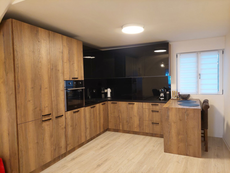 Die gut durchdachte Raumaufteilung sorgt für ein angenehmes Wohngefühl. Besonders hervorzuheben ist die moderne Einbauküche, die zum gemeinsamen Kochen und Verweilen einlädt. Hier können Sie kulinarische Highlights zaubern und gleichzeitig den Blick in den Wohnbereich genießen.