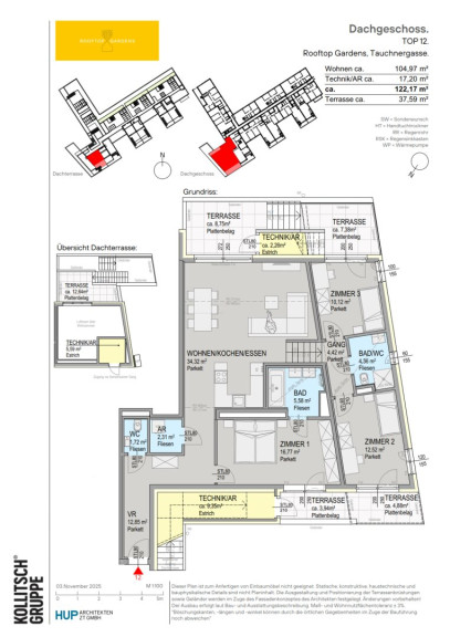 ROOFTOP GARDENS ist ÖGNI-Gold zertifiziert und erfüllt die Anforderungen der EU-Taxonomie – ein sichtbares Zeichen für nachhaltiges, verantwortungsvolles Bauen. Auch in der Mobilität zeigt sich dieser Anspruch: zwölf Pkw-Stellplätze sind für E-Ladestationen vorbereitet, und 30 Fahrradabstellplätze fördern eine moderne, umweltbewusste Lebensweise.