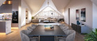 Das Gebäudeensemble besteht aus drei Villen und fügt sich harmonisch ins Landschaftsbild. Es ist ein einzigartiges Beispiel für Nachhaltigkeit und Energieeffizienz. Sein Herzstück ist die KnödelWilla, die wir mit viel Einfühlungsvermögen aus dem früheren Gasthaus „Alte Knödelhütte“ weiterentwickelt haben. Zu einem architektonischen Kleinod, das höchste Ansprüche an modernes Wohnen erfüllt.