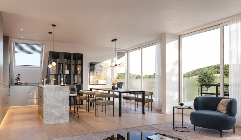 Ein unbeschwertes Leben führen. In luxuriösen Eigentumswohnungen etwas über der Stadt. Im grünen Sievering. Wo Heurige zum Genuss verführen und Weingärten zum Spazieren einladen. Der Wienerwald ist nicht weit. Und die Aussicht über Wien ist einfach himmlisch.