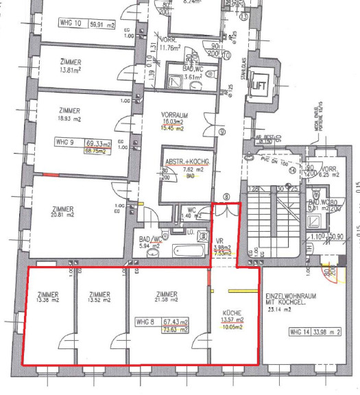 Parkett, Gas, Etagenheizung, Personenaufzug