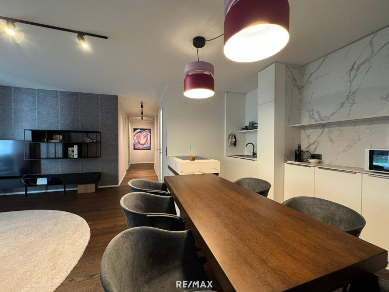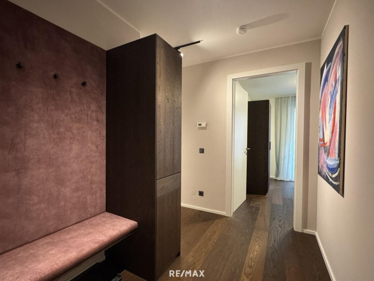 Die hochwertigen Böden aus Parkett und Fliesen verleihen der Wohnung ein modernes und stilvolles Ambiente. Die 3-Zimmer-Wohnung ist mit hochwertigen Möbeln, wie auf den Fotos ersichtlich, komplett ausgestattet. Das Mobiliar ist im Mietpreis inkludiert.