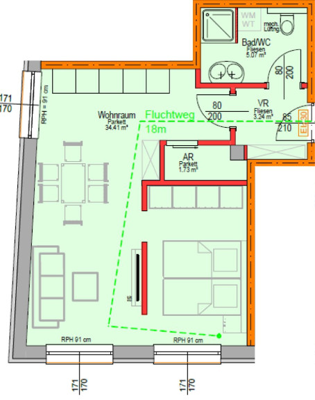 Die Vorschreibung der Betriebs-/Heizkosten (Akontozahlung lt. Hausverwaltung) beträgt inklusive Steuer € 170,80.