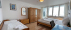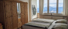 Das ebenfalls ca. 18 m² große Schlafzimmer hat, wie das Wohnzimmer, eine Verglasung über die ganze Breite des Zimmers nach Süden hin mit direktem Zugang zur Loggia. Der große Kleiderschrank wurde vor zwei Jahren angeschafft. Im Wohnzimmer und Schlafzimmer finden Sie ausschließlich Massivholzmöbel.