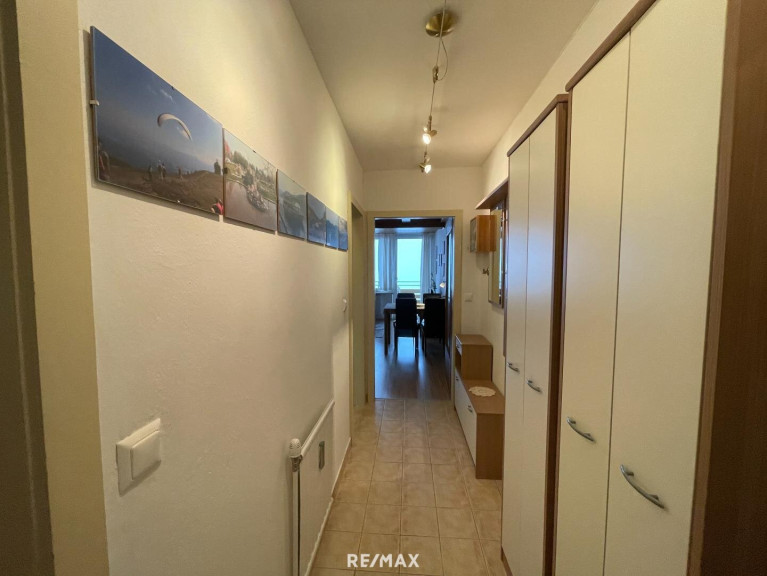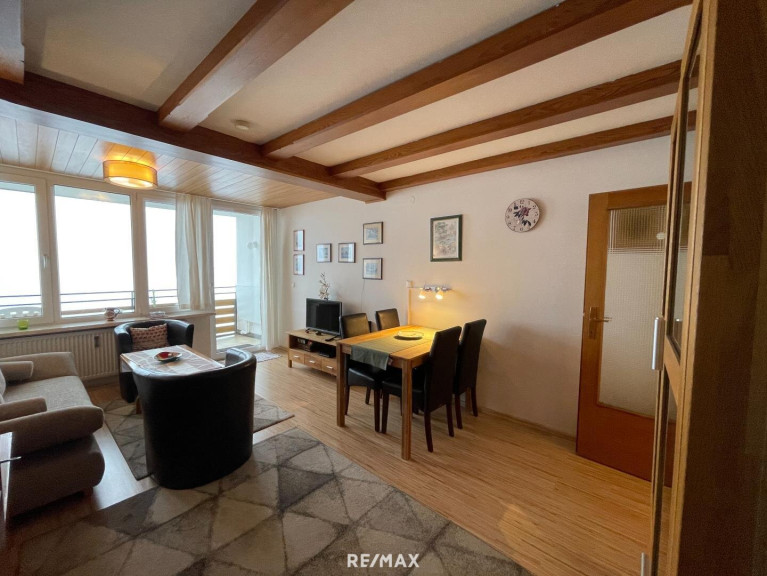 Die Außenwand zur Loggia ist isoliert und neu verputzt. Die ca. 10 m² große Loggia erstreckt sich über Wohnzimmer und Schlafzimmer, nimmt somit die gesamte Wohnungsbreite ein und ist durch die darüberliegende Loggia vollständig überdacht. Den wundervollen Ausblick genießen Sie bereits bei Sonnenaufgang und wenn es im Tal bewölkt ist, strahlt auch über den Wolken die Sonne in die Loggia.