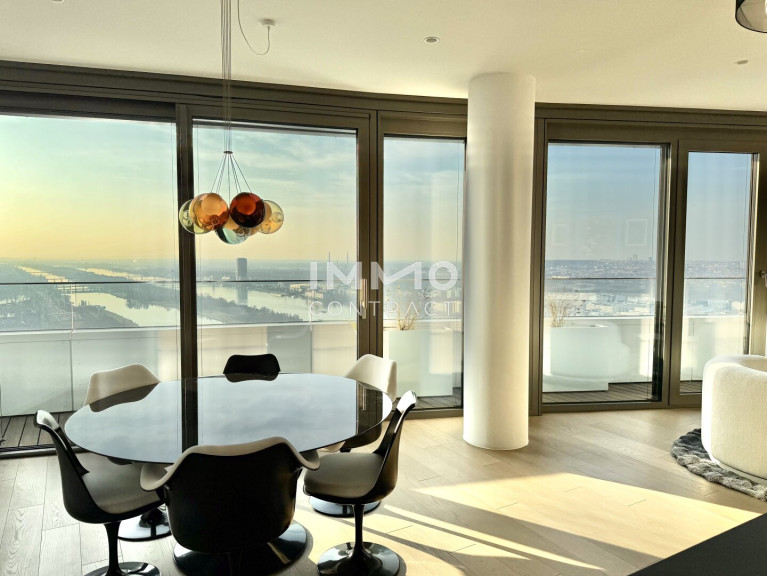 Diese exklusive Wohnung befindet sich in den Danubeflats, einem der prestigeträchtigsten Wohnhäuser Wiens und dem höchsten Wohnturm Österreichs. Die hochwertige Architektur, bodentiefe Fenster und das moderne Design schaffen ein einzigartiges Wohngefühl hoch über der Stadt. Die Bewohner genießen einen spektakulären Blick über Wien sowie erstklassige Annehmlichkeiten direkt im Haus. Dazu zählen ein exklusiver Wellnessbereich mit Swimmingpool, ein modern ausgestattetes Fitnessstudio, sowie ein Restaurant und eine Bar, die den luxuriösen Lifestyle dieses außergewöhnlichen Hauses perfekt ergänzen. Eine seltene Gelegenheit für alle, die Wohnen auf höchstem Niveau in einer der exklusivsten Adressen Wiens suchen.