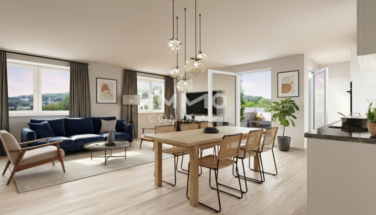 Diese großzügige 3-Zimmer-Wohnung im letzten Liftstock erfüllt höchste Ansprüche an modernes Wohnen. Der offene Wohn- und Essbereich mit integrierter Küche schafft Raum für gemeinsames Kochen, Lachen und Leben – hier werden aus Alltagen Lieblingsmomente. Von dort gelangen Sie direkt auf die westseitige Terrasse, wo Sie die Sonne bis in den Abend genießen können.