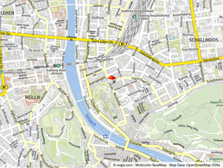 Wenige Meter vom Mirabellplatz entfernt ist diese Geschäftsfläche öffentlich bestens angebunden. In unmittelbarer Nähe verkehren folgende Buslinien: 1, 2, 3, 5, 6, 14, 25 sowie diverse regionale. Gleichfalls in Gehweite befinden sich gastronomische Einrichtungen wie Cafés und Restaurants wie auch Nahversorger; die Salzburger Altstadt sowie der Hauptbahnhof sind ebenfalls nur wenige Schritte entfernt.