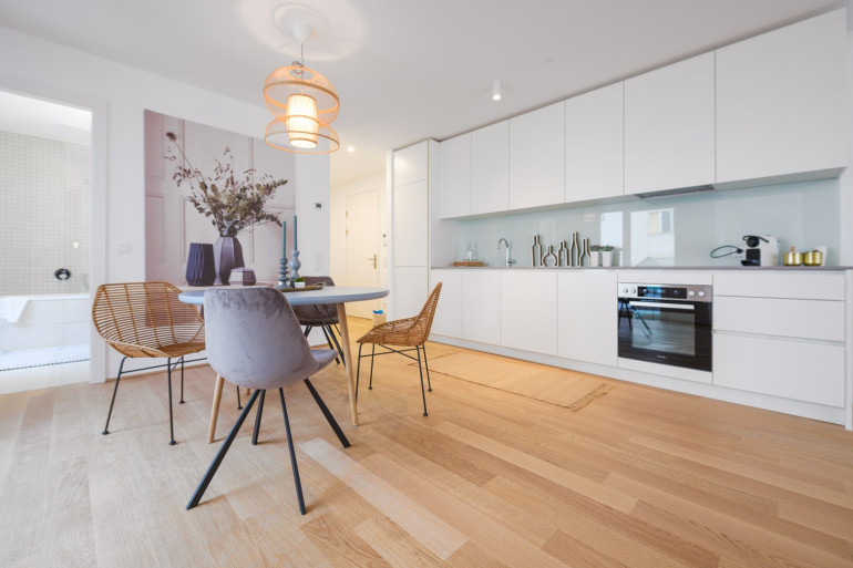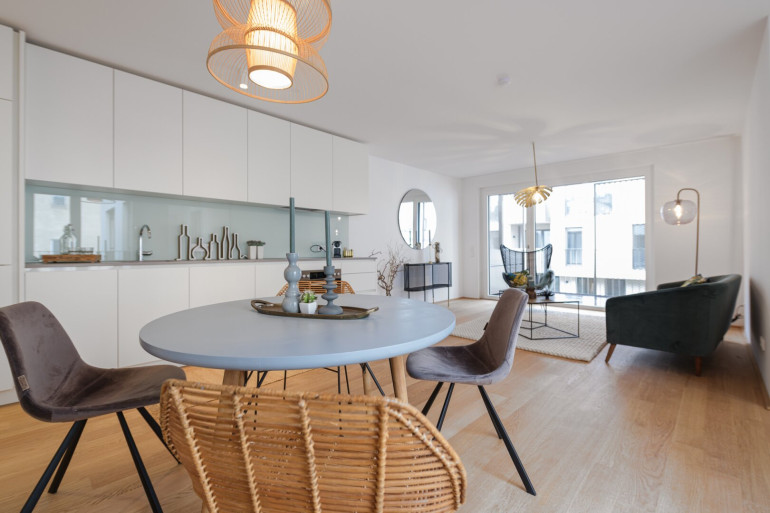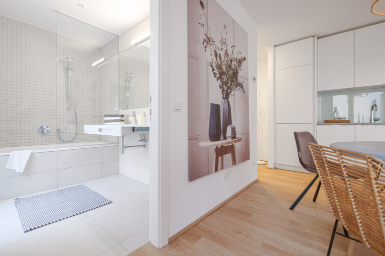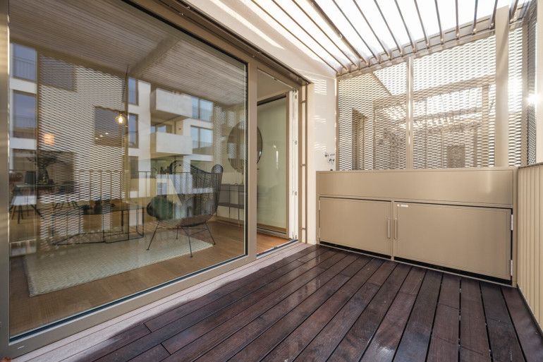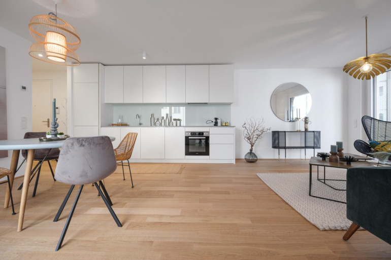 Jede Wohnung ist nicht nur mit einer Freifläche ausgestattet, sondern weißt auch hochwertige Materialien als auch Ausstattung aus: