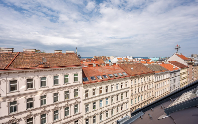 Zum Verkauf steht eine ca. 130m² große, neu errichtete 4-Zimmer-Wohnung mit Dachterrasse in einem gepflegten Altbau. Die Wohnung befindet sich im 6. Stock (2. Dachgeschoss) und wird als Erstbezug angeboten.