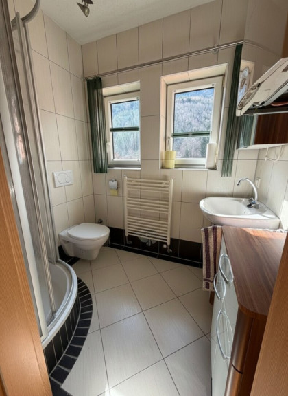 Badezimmer 2: Nach Süden ausgerichtet, mit Dusche, WC und Fenster, bietet es zusätzlichen Komfort und Flexibilität.