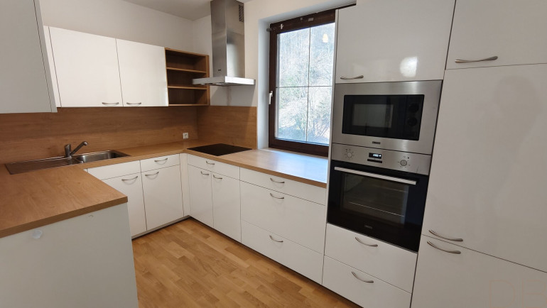 Fliesen, Laminatboden, Elektro, Heizofen, Einbauküche, Südbalkon, Kabel/Satelliten-TV, Carport
