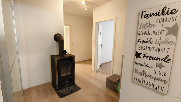 Beheizt wird die Wohnung über zwei Kamine, die eine besonders angenehme und gemütliche Wärme erzeugen, ergänzt durch Infrarot-Paneele. Die derzeitigen Eigentümer hatten trotz eines 5-Personen-Haushalts Stromkosten von lediglich ca. € 180 monatlich, da die Kamine den Großteil der Heizleistung übernehmen.