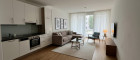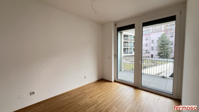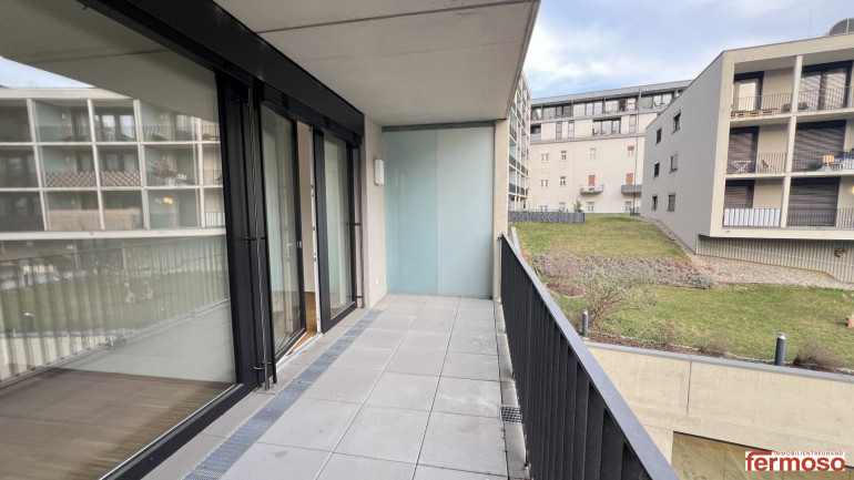 Die Wohnung besticht durch ihre durchdachte Raumaufteilung und die hochwertige Ausstattung. Die Kombination aus Fliesen und Parkett schafft ein stilvolles Ambiente, während die Loggia mit ihrem herrlichen Grünblick der perfekte Ort ist, um den Feierabend zu genießen oder den Tag mit einer Tasse Kaffee zu beginnen. Hier können Sie die Natur hautnah erleben und die Ruhe der Umgebung genießen, ohne auf die Vorzüge der Stadt verzichten zu müssen.