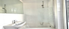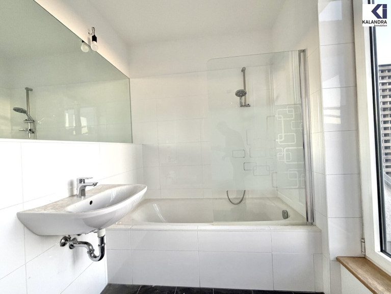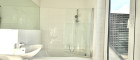 - moderne Badezimmerausstattung (weiß/ grau verfliest)