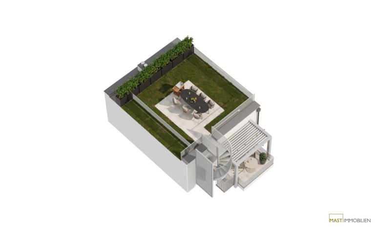 - Balkon ca. 6,95 m² mit Zugang zur Dachterrasse mit ca. 33,15 m²