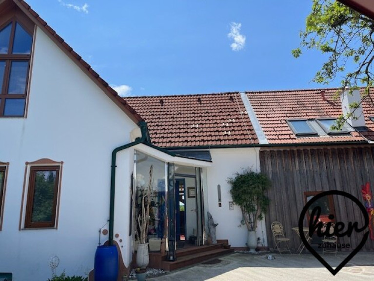 Rund 300 m² Wohn-/Nutzfläche auf 2 Ebenen (EG: rd. 200 m², OG: rd. 100 m²) erwarten Sie auf einem wunderschönem, terrassierten Grundstück mit ca. 6.900 m² Wiesen, Weiden und Gärten u.a. samt Schwimmteich und Holztenne.