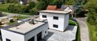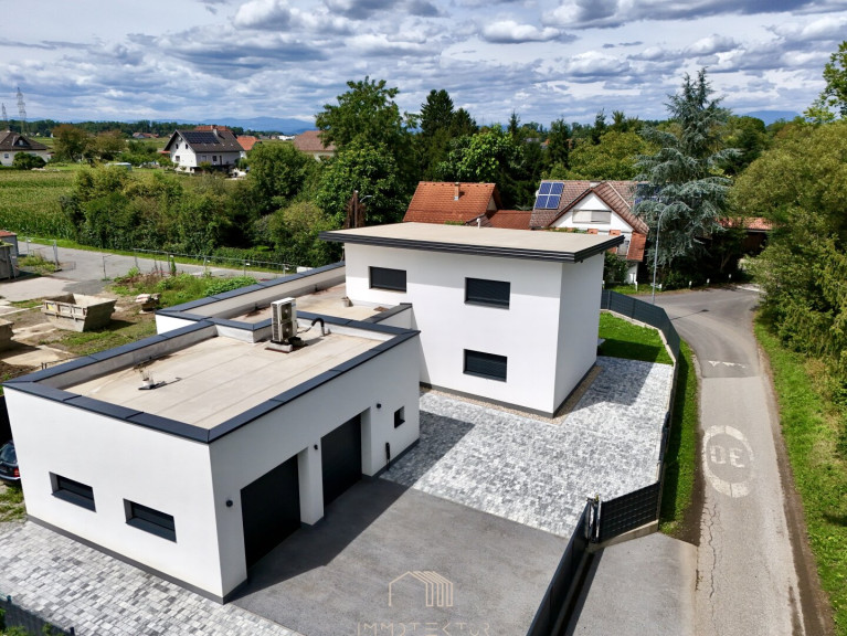 RUHE UND NATUR: Modernes Einfamilienhaus mit hoher Doppelgarage im Grünen