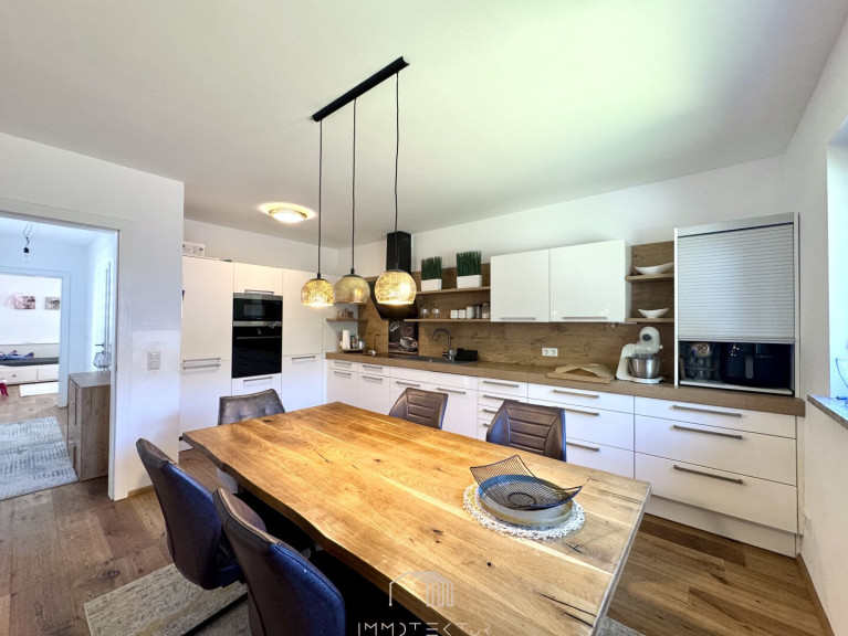 Dieses charmante Einfamilienhaus bietet die perfekte Kombination aus Wohnkomfort, hochwertiger Ausstattung und ruhiger Lage im Grünen – ideal für Familien, die ihren Kindern ein behütetes Aufwachsen in naturnaher Umgebung ermöglichen möchten.