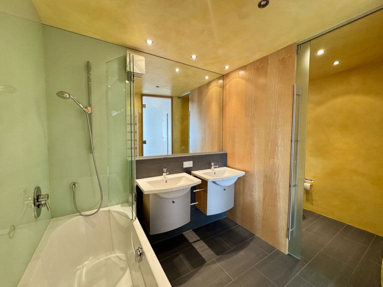 The apartment is situated on the 25th floor and offers an impressive panoramic view over Vienna.