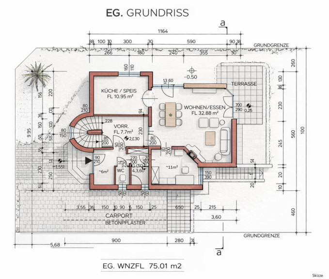 - großzügige Terrasse mit idealer Ausrichtung (NO/W)