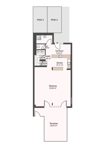 - 2 KFZ-Stellplätze mit E-Ladestadion