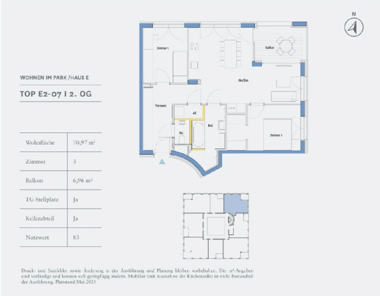 Die Top E2-07 ist ca. 70,97 m² groß, befindet sich im 2. Stock und hat folgende Räumlichkeiten: