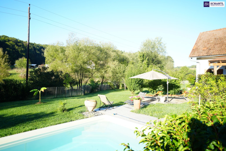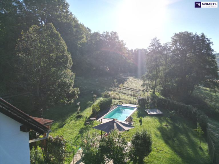 - Highlight für den Sommer: ein großer Swimmingpool, eingebettet in den idyllischen Garten