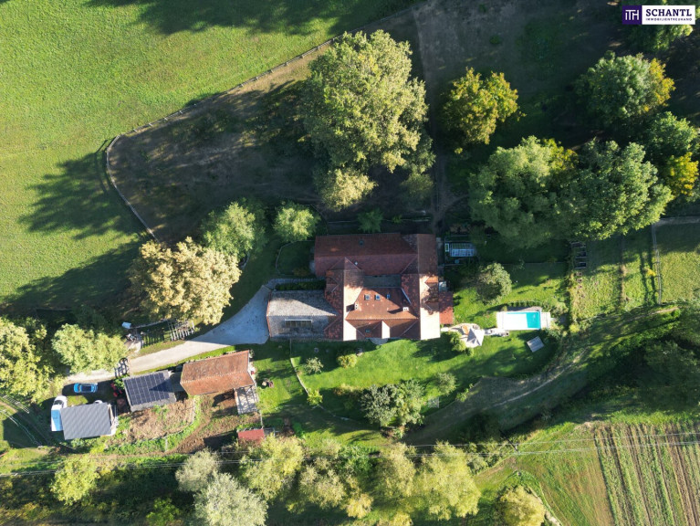 NEUER PREIS! AUSSERGEWÖHNLICHES JUWEL! Exklusiver Vierkanthof im Thermenland Steiermark – Wohnen, Reiten & Leben mit Pool und Natur!