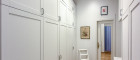 - 1 Vorraum mit Einbauschränken und Waschmaschinenanschluss sowie Ausziehtreppe zu einem Stauraum im Dachboden