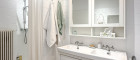 - 1 Bad mit WC, Dusche, Waschbecken und Handtuchheizkörper