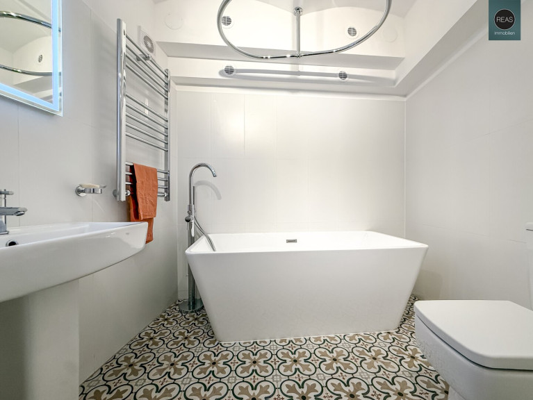 - 1 Bad mit freistehender Badewanne, WC und Waschbecken