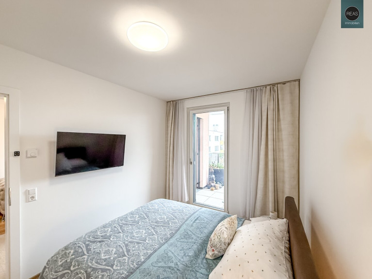 - 1 Schlafzimmer samt Einbauschrank vom Tischler mit Ausgang zum Balkon