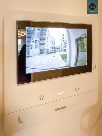 Zur hochwertigen Ausstattung der Wohnung gehören unter anderem: WK3 Sicherheits-Eingangstüre mit Alarmanlagenvorbereitung, Deckenkühlung mittels Fernkälte, Fußbodenheizung mittels Fernwärme, Echtholzparkettböden, Feinsteinzeug im Badezimmer, 3-Fach verglaste Thermo-Fenster (Holz-Alu) inkl. Außenbeschattungen (elektrische Screens), Balkon mit Panorama-Blick samt Blumentrog und Beleuchtung, trockenes und großzügiges Kellerabteil, Video-Gegensprechanlage, uvm.