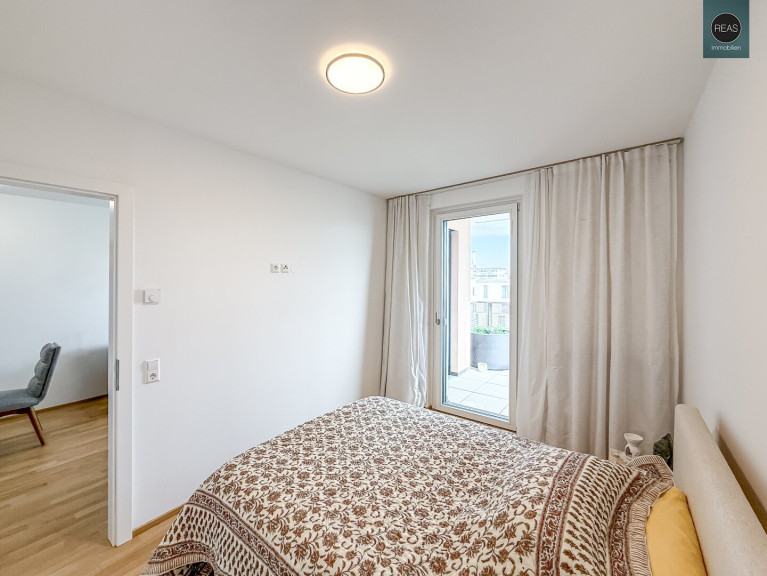 - 1 Schlafzimmer samt Einbauschrank vom Tischler mit Ausgang zum Balkon