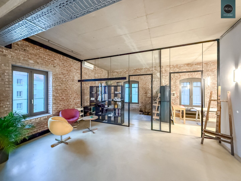 In einem hochwertig und komplett sanierten historischen Fabriksgebäude der ehemaligen Ankerbrotfabrik gelangt eine ganze Etage in Form von 2 nebeneinander liegenden Lofts mit diversen Freiflächen zum Verkauf.