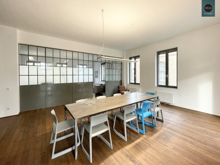 In einem hochwertig und komplett sanierten historischen Fabriksgebäude der ehemaligen Ankerbrotfabrik gelangt 1 Büroraum sowie außerdem bis zu 2 Arbeitsplätze in einem Gemeinschaftsbüro - Loft zur Vermietung!