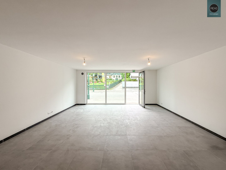 - 1 großer Geschäfts- oder Büroraum mit großer Verglasung und Eingangstüre zur belebten Straßenseite. Küchenanschlüsse vorhanden im hinteren Bereich samt zusätzlichem Fenster für gute Belichtung.